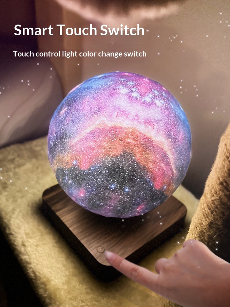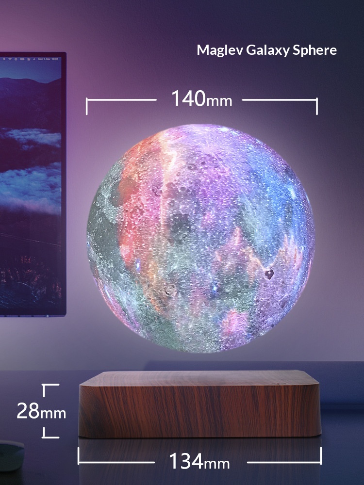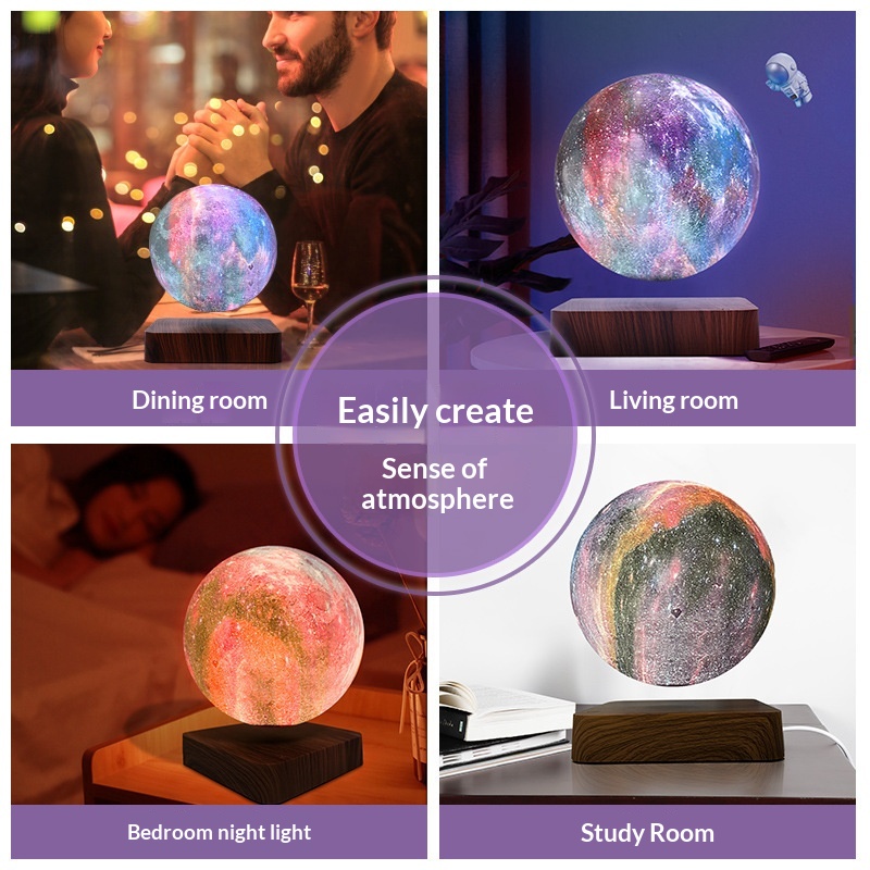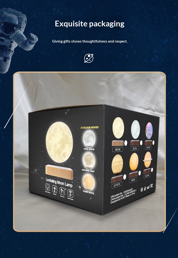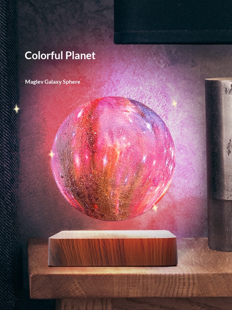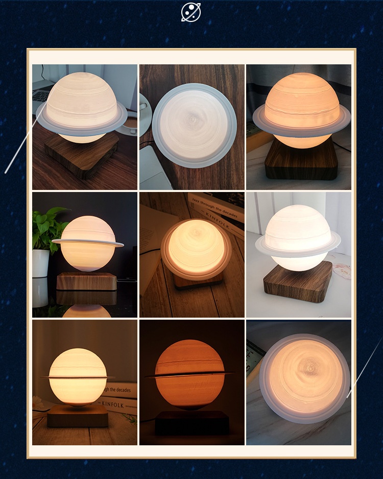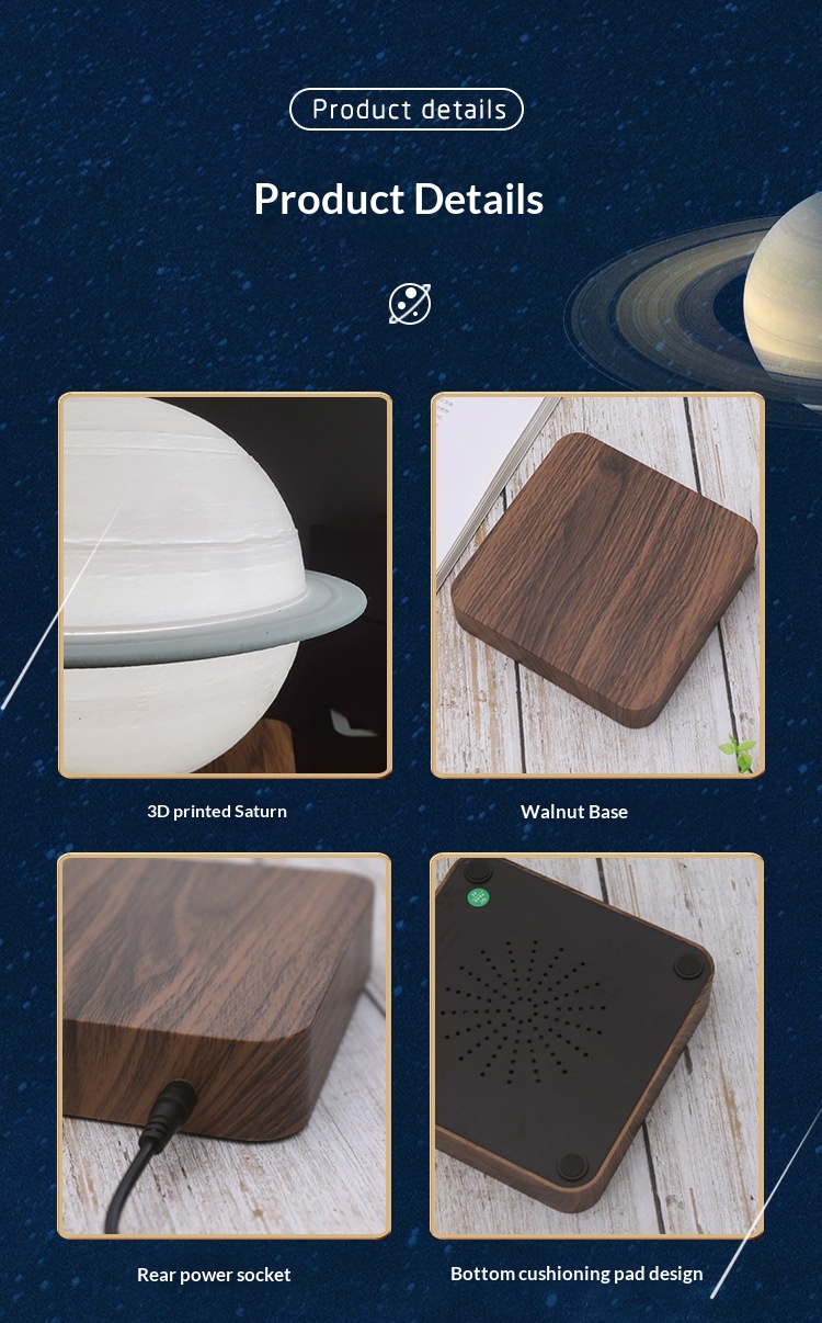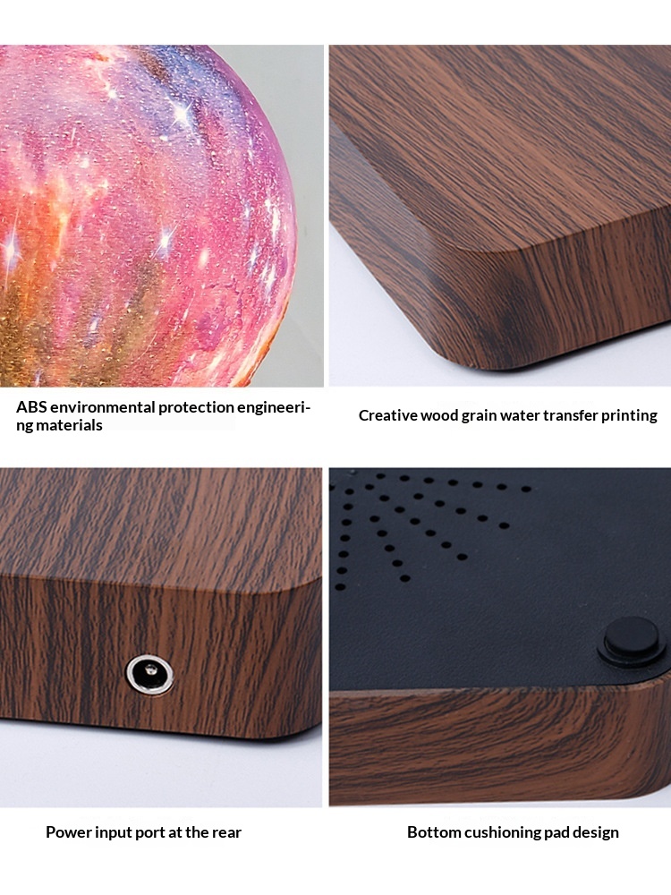 Colors: 6-inch deep wood-grain base with galactic sphere, 6-inch light wood-grain base with moon, 6-inch deep wood-grain base with moon, 6-inch light wood-grain base with Jupiter, 6-inch deep wood-grain base with Jupiter, 6-inch light wood-grain base with Saturn, 6-inch deep wood-grain base with Saturn